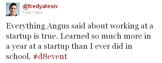 Angus talked about life at Swipely and how they've had to pivot to a new business idea. He didn't pull any punches in talking about what really mattered and what it's like. This tweet sums it up: