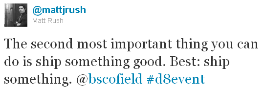 The day wouldn't be complete without a great presentation on the importance of getting your code out in the wild as soon as possible! Students ate up Ben's presentation as many tweeted furiously about the need to get something out there. This tweet on Ben's session was one of the most RT'd tweets of the day: